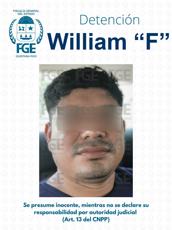 La Fiscalía General del Estado de Quintana Roo, informa que Policías de Investigación cumplimentaron orden de aprehensión emitida por un juez a William “F” como probable participante en el delito de feminicidio en agravio de una víctima de identidad reservada.