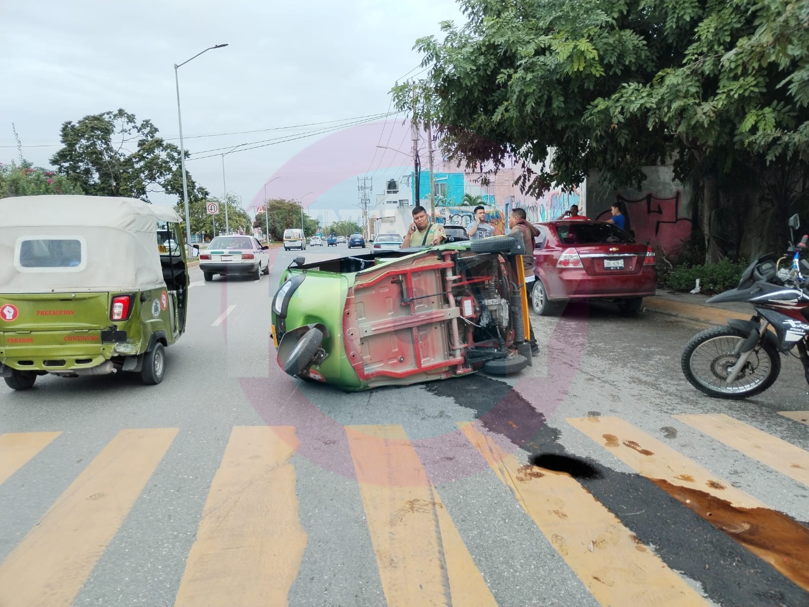 CANCÚN.- Una volcadura dejó a dos personas lesionadas en un trágico incidente en las inmediaciones de la avenida Chac Mool, específicamente en el fraccionamiento Galaxias del Sol en Cancún.