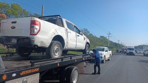 Testigos afirman que, al momento de la volcadura, varias personas salieron proyectadas fuera de la unidad; unos sobre el asfalto y otros sobre la maleza.