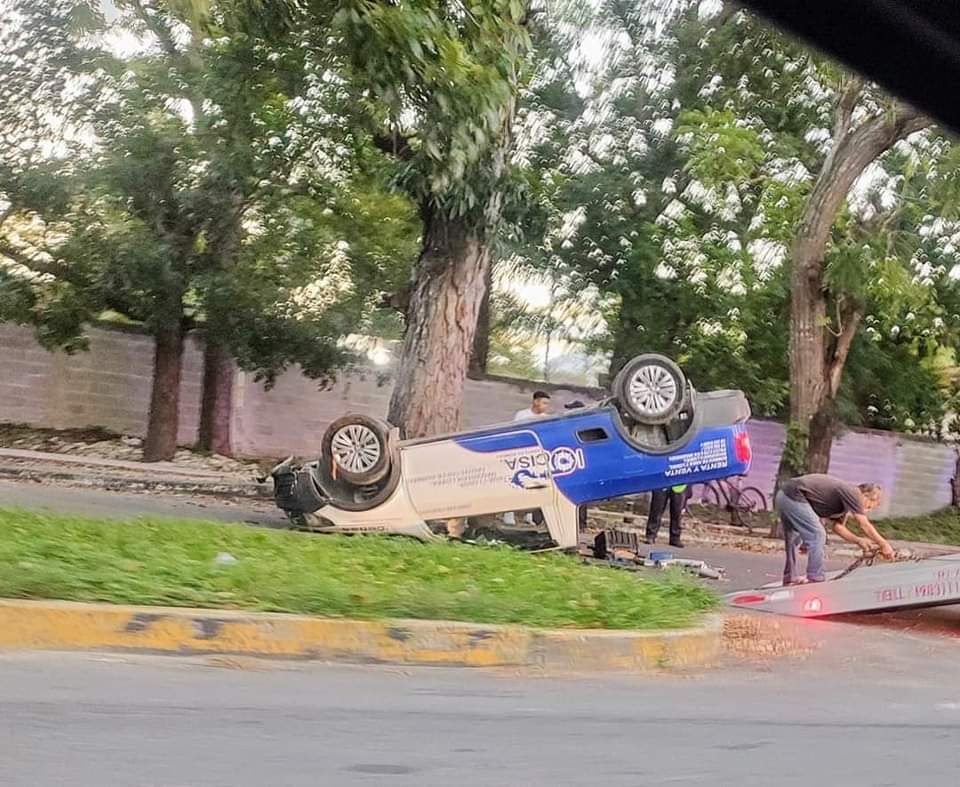 Datos preliminares refieren que la camioneta de la empresa Iocisa terminó sobre la carpeta asfáltica del bulevar, luego de dar varias volteretas.