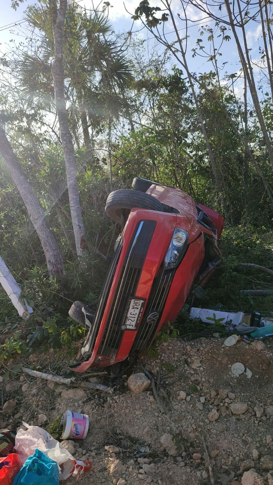 Un aparatoso accidente se registró la tarde de ayer en la autopista Cancún-Mérida a la altura del kilómetro 271, donde el conductor de un auto perdió el control y terminó volcándose, dejando como saldo de este percance cuatro personas lesionadas.