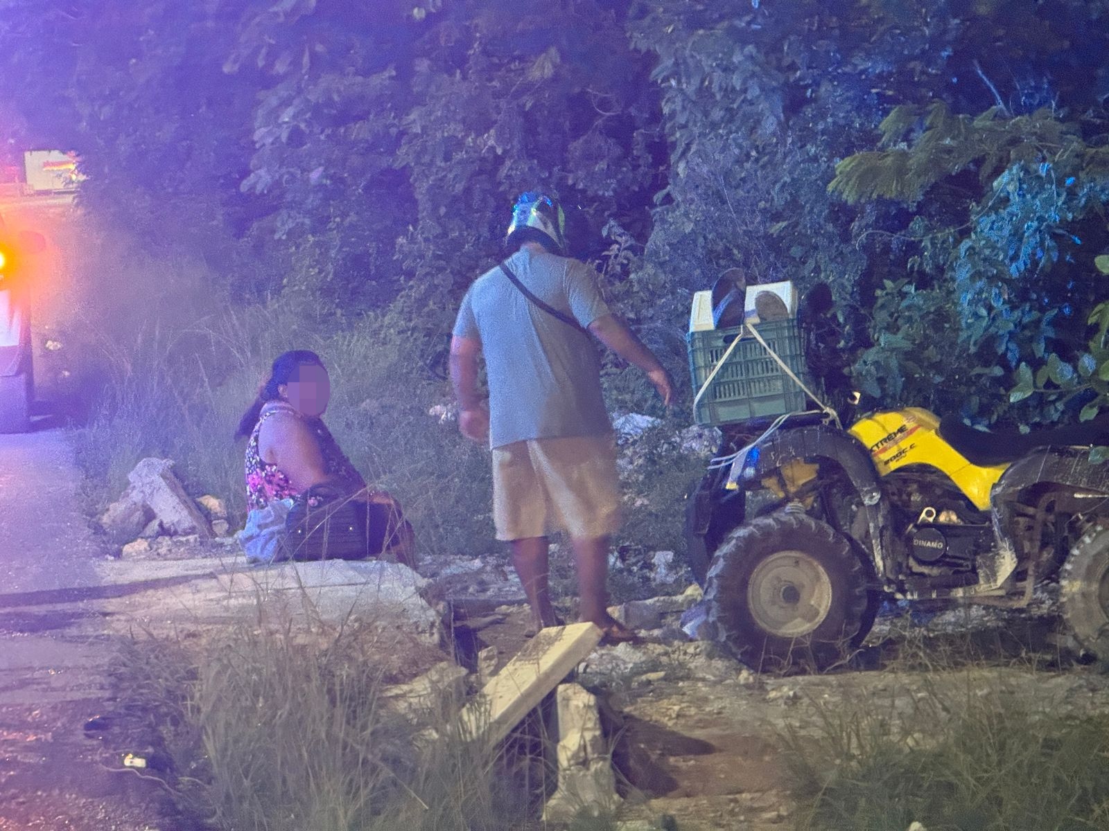 PLAYA DEL CARMEN.- Una pareja en estado de ebriedad que conducía una motoneta terminaron esta tarde a un lado de la carretera a “El Tintal”, quedando lesionada solo la mujer, quien fue llevada al Hospital General.