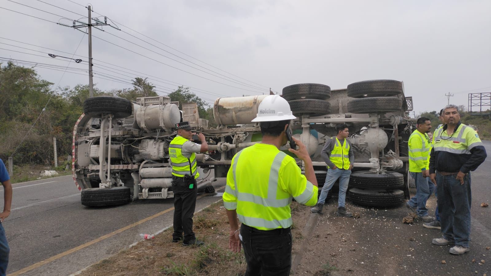 Playa del Carmen.- Una revolvedora de cemento, de la empresa Holcim Apasco, terminó volcada sobre el camellón de la carretera federal 307, luego que el chofer de esta unidad pesada perdiera el control, en las inmediaciones de Paamul, al sur de este municipio.