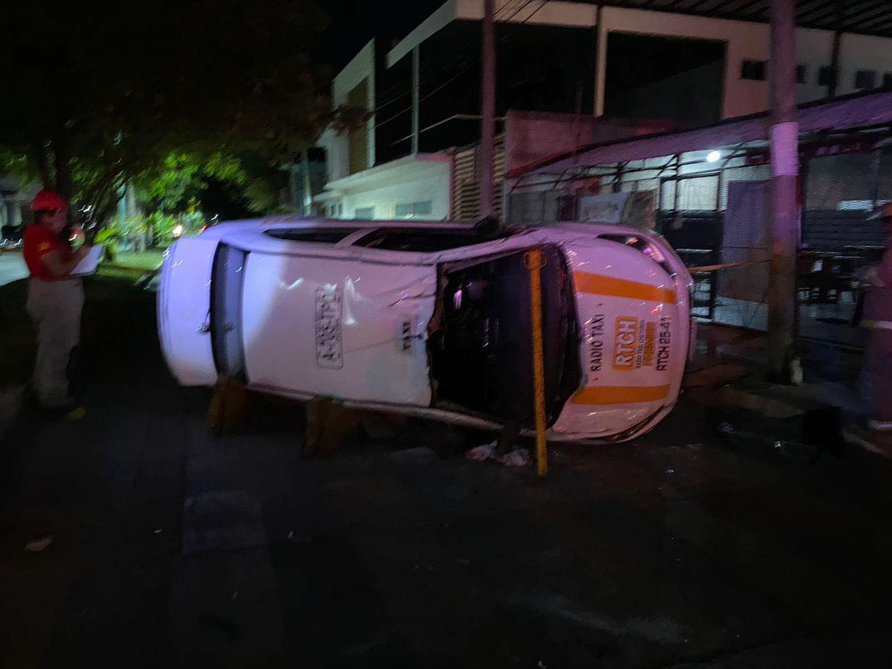 El conductor del taxi fue impactado por el automovilista, lo que provoco que el ruletero perdiera el control de la unidad y terminara volcando.
