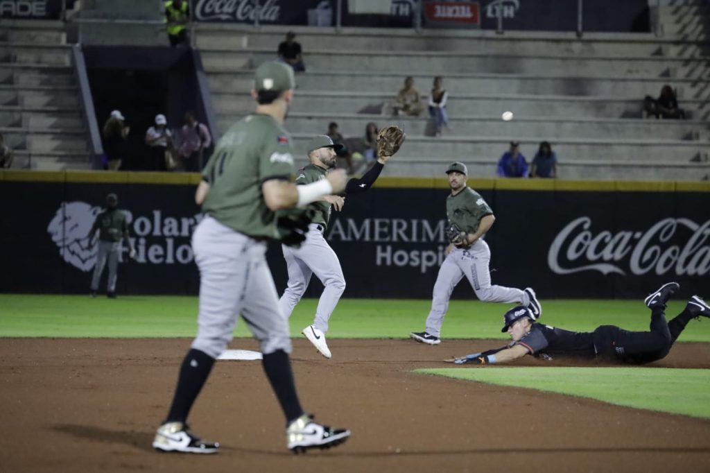 Posteriormente los fronterizos recuperaron la batuta de la batalla en el sexto rollo, al anotar tres rayitas, destacando un cuadrangular de dos carreras de Hernan Pérez (12), por encima de la barda del jardín izquierdo.
