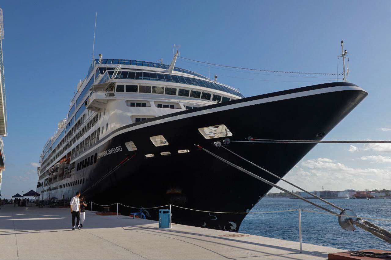 De acuerdo con su itinerario el Azamara Onward, hizo escala en Puerto Costa Maya en Mahahual, posteriormente arribo a la terminal de Punta Langosta en Cozumel, continuará su trayecto hacia Miami, Estados Unidos.