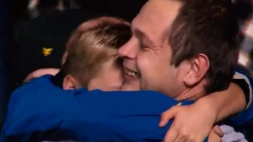 Tras el silbatazo final, un jugador del cuadro visitante se acercó a las gradas para obsequiarle su playera al menor. El papá y su hijo celebraron el acto, gritaron, levantaron el puño en señal de victoria, los demás aficionados aplaudieron, pero el momento más significativo fue cuando ambos se fundaron en un fraterno abrazo. El niño no pudo contenerse las lágrimas.