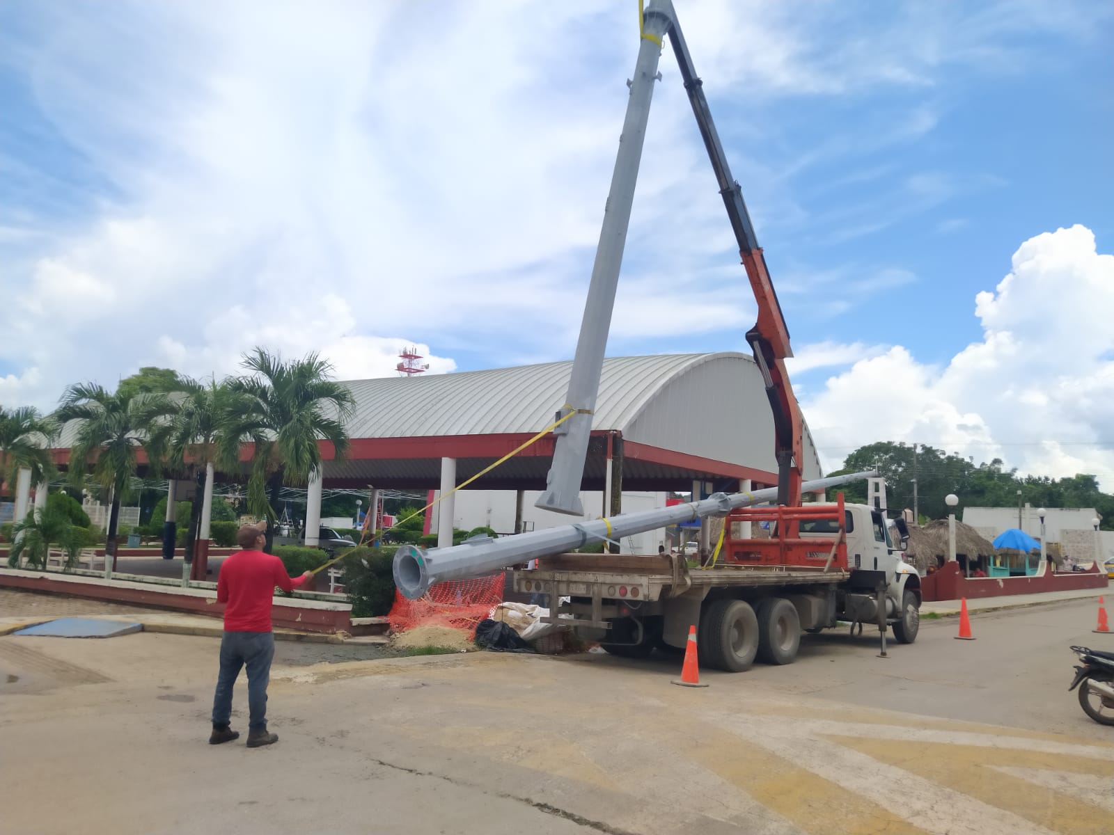 Se notó el trabajo que viene realizando la empresa en pleno centro de la ciudad de instalación de la torres de video vigilancia, ubicado en la calle 5 de febrero a un costado del jardín de niños “José María Morelos” y del Palacio Municipal.