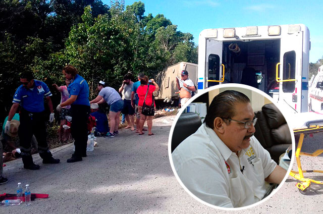 CHETUMAL, Quintana Roo.- Miguel Pech Cen, fiscal general del estado, dio a conocer que por una maniobra errónea, el chofer del autobús perdió el control y volcó, provocando la muerte de 12 turistas.
