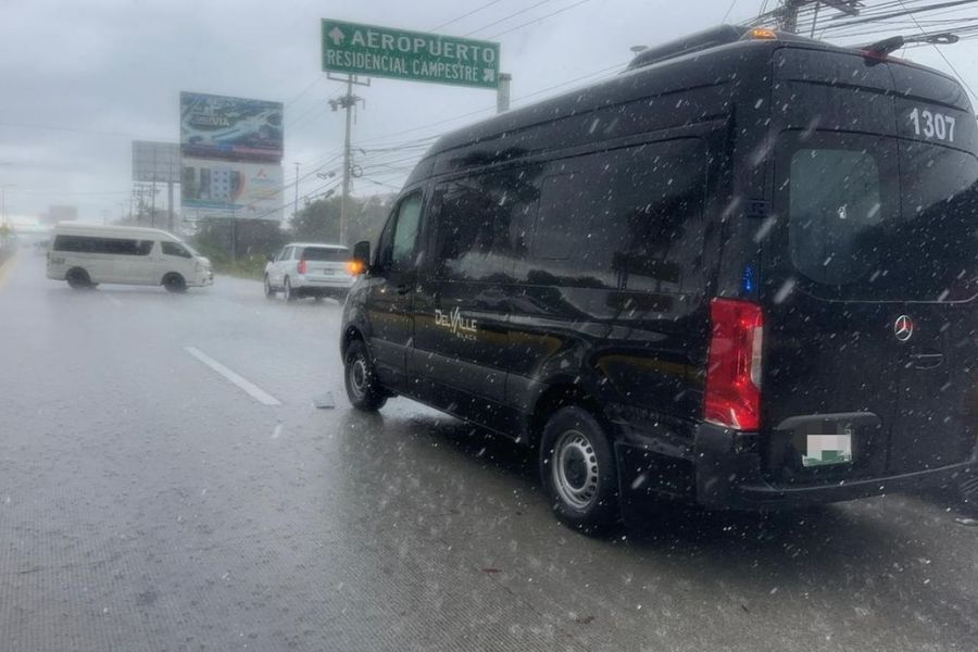 Cancún.- Las intensas lluvias registradas este lunes contribuyeron a un accidente vehicular sobre el bulevar Luis Donaldo Colosio, a la altura del fraccionamiento Residencial Campestre, provocando afectaciones al tránsito en dirección hacia el aeropuerto.