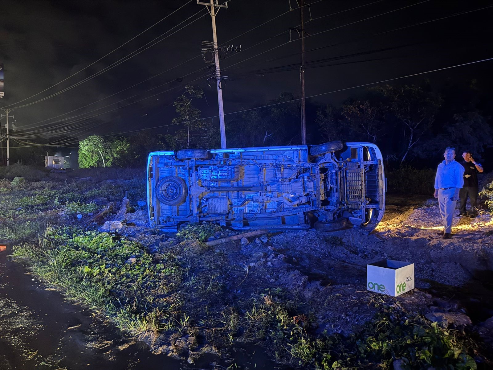 Cancún.- Una van volcó la noche de este jueves, cuando su conductor se dirigía hacia el centro de la ciudad mientras transitaba a exceso de velocidad sobre el bulevar Luis Donaldo Colosio de esta ciudad.