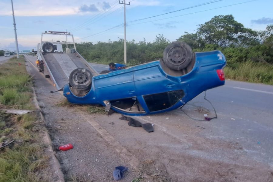 TULUM.— Un accidente vehicular registrado en el kilómetro 241 de la carretera federal 307 dejó como saldo un automóvil volcado, aunque sin personas lesionadas. El incidente generó alarma entre automovilistas que transitaban por la zona, aunque no se reportaron daños mayores ni otros vehículos involucrados.