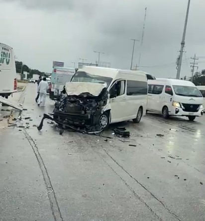 El choque ocurrió a la altura de Bahía Petempich e involucró un autobús que transportaba trabajadores hoteleros y una Urban de servicio turístico.