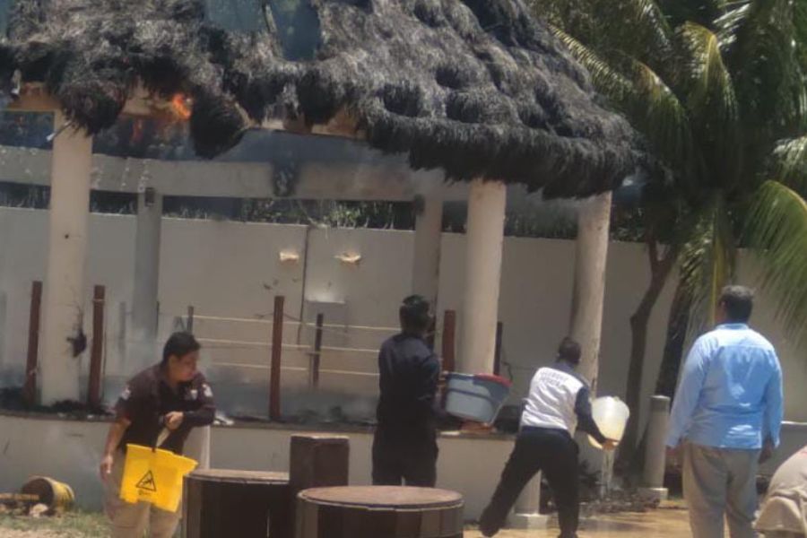 Cancún.- En cuestión de minutos, el fuego redujo a escombros una palapa de paja ubicada en una zona residencial de alto tránsito sobre el boulevard Luis Donaldo Colosio, a la altura del C5.