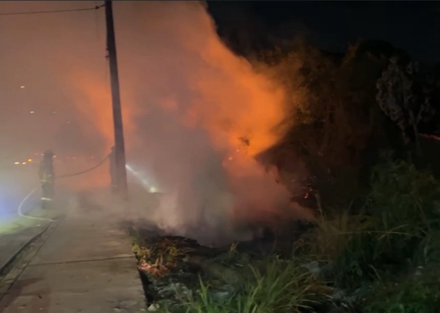 El fuego había consumido gran parte de la maleza. Bomberos llegaron hasta el lugar para sofocar el fuego.