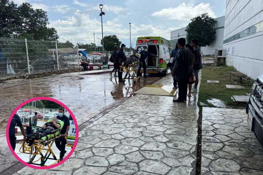 Cancún.- Bajo una intensa lluvia, un accidente de tránsito se registró en las inmediaciones de la colonia El Milagro, donde un motociclista resultó lesionado tras ser víctima de un corte de circulación por parte del conductor de una camioneta.