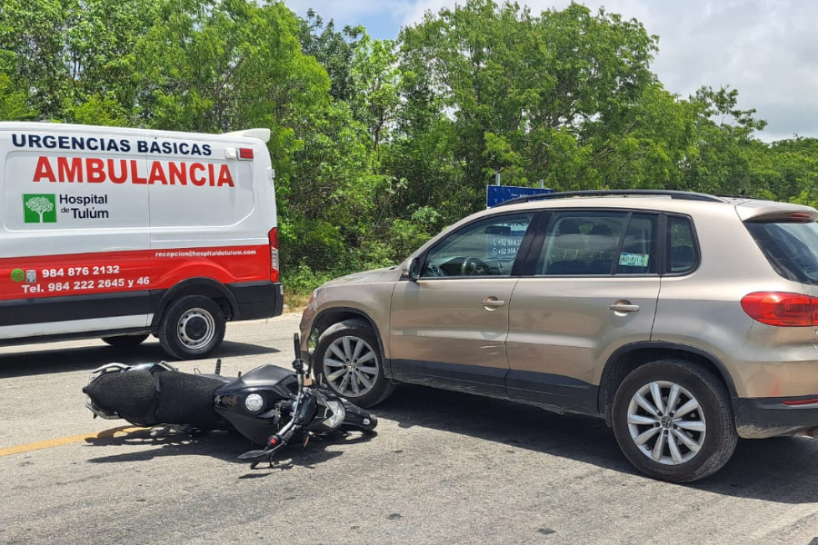 El conductor de la motocicleta quedó tendido sobre el pavimento con lesiones visibles, por lo que fue atendido por paramédicos del Hospital de Tulum, quienes le brindaron los primeros auxilios en el lugar y posteriormente lo trasladaron al nosocomio para una mejor valoración médica.