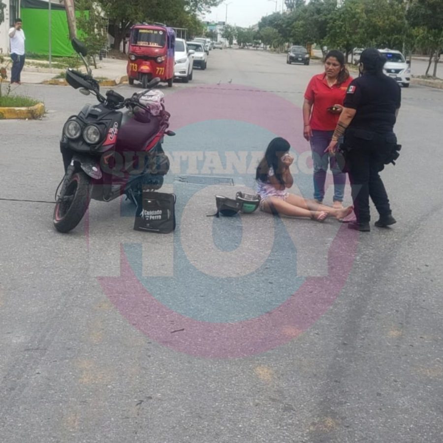 CANCÚN.- Una menor resultó lesionada tras un accidente vial protagonizado por un presunto mototaxista y el conductor de una motocicleta en las inmediaciones del fraccionamiento Paseos del Mar, en la región 251 de Cancún.