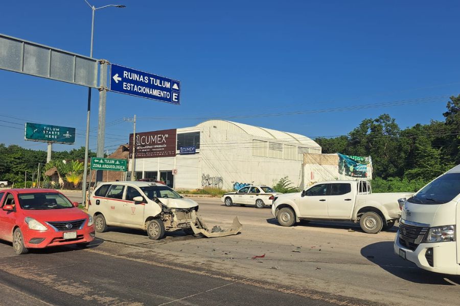 El percance involucró a una camioneta Nissan blanca conducida por un empleado del Tren Maya y a un taxi del Sindicato Tiburones del Caribe. De acuerdo con el informe policial, el trabajador intentó incorporarse al retorno sin tomar las debidas precauciones, provocando el impacto del taxi con número económico TM-466, que circulaba con preferencia.