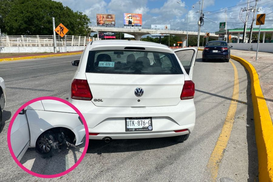 Cancún.- Un vehículo particular terminó impactado contra el camellón central de la avenida Kabah, en el entronque con el bulevar Luis Donaldo Colosio, a la altura de la supermanzana 10, tras perder el control al momento de incorporarse al carril de baja velocidad.