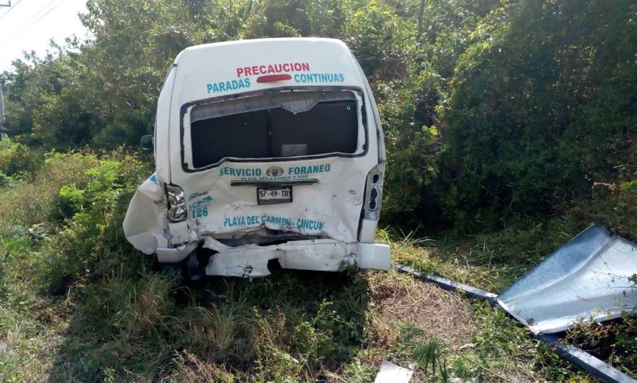 Cancún-Playa, Quintana Roo.- El caos se desató en la carretera federal Cancún-Playa del Carmen en la tarde de ayer, cuando un camión de carga se estrelló contra una van de transporte público de servicio foráneo, ruta Paseos Kabah.