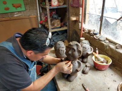Con un costo de 180 pesos por pieza el artesano alfarero metepequense admitió que al principio tuvo miedo de que su producto no pegara porque cundía el presentimiento de que López Obrador podría perder por tercera ocasión.