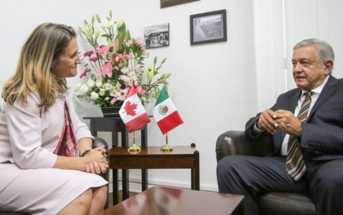 Ciudad de México.- El virtual Presidente electo, Andrés Manuel López Obrador, obtuvo un importante acuerdo con la canciller de Canadá, Chrystia Freeland, para que las empresas canadienses establecidas en México respeten las mismas exigencias de libertades, derechos humanos, medio ambiente y derechos laborales, que en su país de origen.
