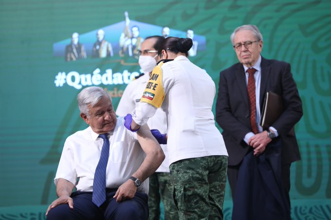 El presidente de México, Andrés Manuel López Obrador recibió este martes su primera dosis de la vacuna contra el COVID-19 en Palacio Nacional.