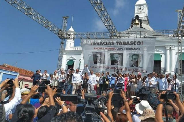 Tabasco.- Esta mañana, el presidente electo Andrés Manuel López Obrador encabezó en una rueda de prensa en palacio de Gobierno, como parte de su gira de agradecimiento, en donde dejó establecido que se va a rescatar la industria petrolera desde Tabasco.
