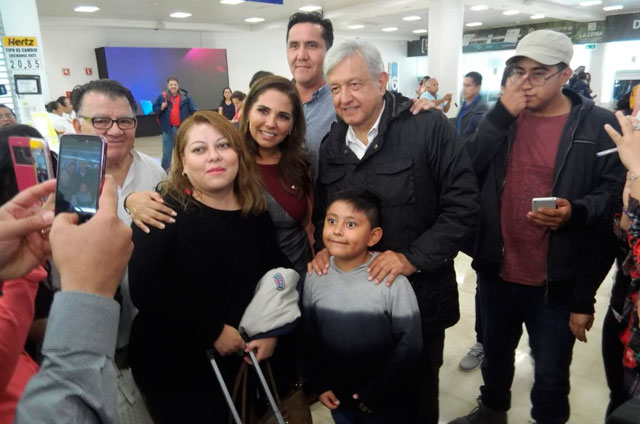 CANCÚN, Q. ROO.- El presidente electo, Andrés Manuel López Obrador, llegó a la ciudad de Cancún, Quintana Roo para reunirse con el gobernador Carlos Joaquín, como parte de su gira del agradecimiento.