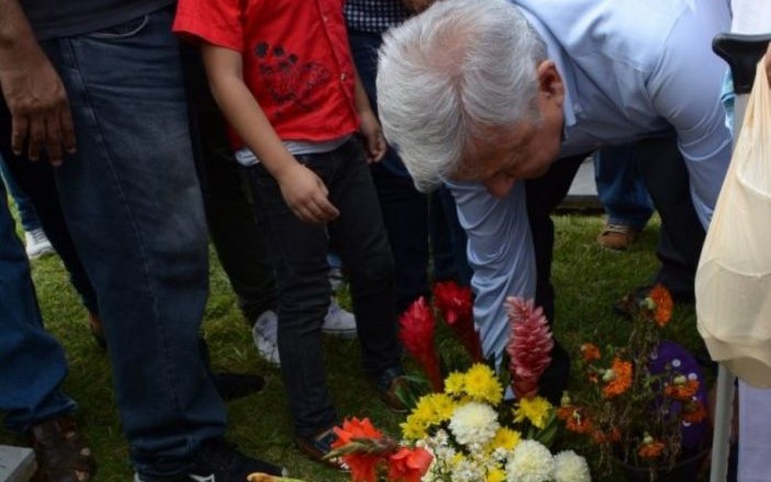 Con una mirada al vacío y su mano izquierda en el bolsillo, el presidente electo de México Andrés Manuel López Obrador, reflexionó después de colocar dos arreglos florales en la tumba donde yacen los restos de su padre Andrés Manuel, su madre Manuelita y su hermano Ramón: los tres en los lotes 11,12 y 13 de la quinta calle del Panteón Central.