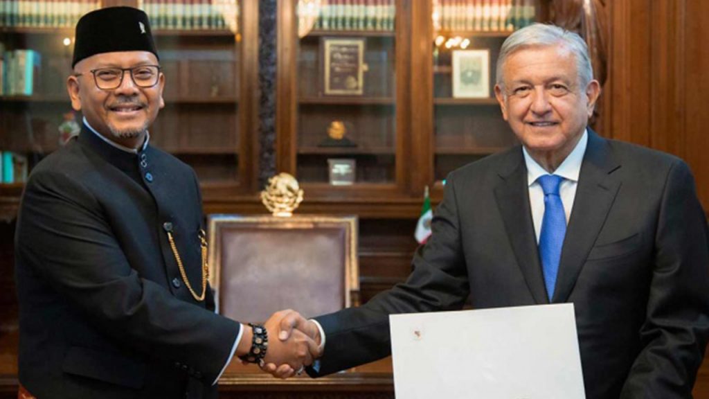 El presidente Andrés Manuel López Obrador recibió este lunes en Palacio Nacional las cartas credenciales de los nuevos embajadores en México de Indonesia, Sudáfrica, Nicaragua y China.