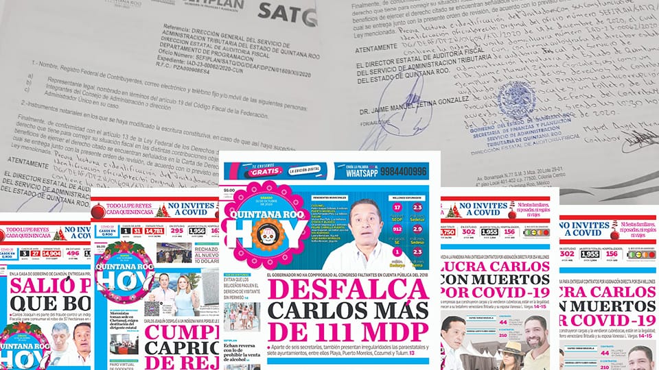 Cancún ¡Atentado a la libertad de expresión! Ordena Carlos Joaquín auditoría a nuestro periódico Quintana Roo Hoy tras denuncias de corrupción de su gobierno Alexis Montero15 diciembre, 2020