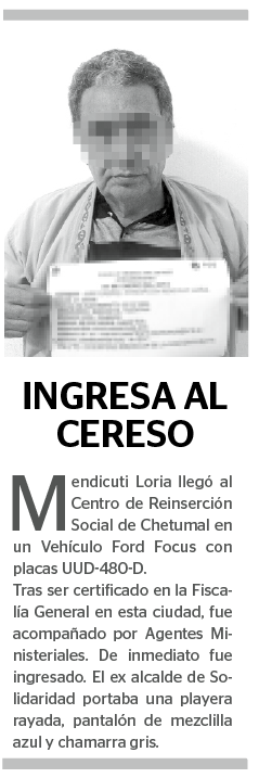 Fue enviado a las instalaciones de la Fiscalía General del Estado (FGE) en Playa del Carmen para la certificación médica, para después ser trasladado al Centro de Reinserción Social (Cereso) de Chetumal, y presentado ante el juez que lo requirió.