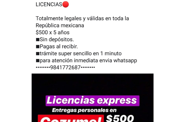 Cozumel Por redes sociales ofrecen licencias apócrifas; no se dejen sorprender Redacción Quintana Roo15 febrero, 2019