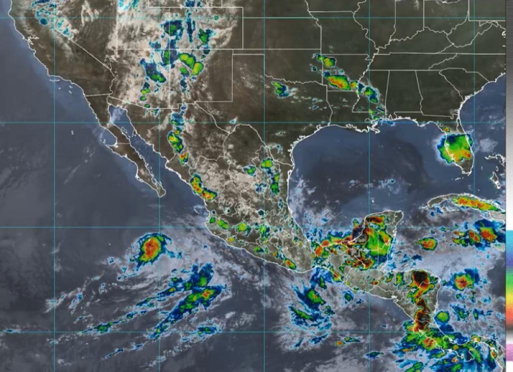 Se pronostican lluvias intensas de75 a 150 milímetros [mm]) en zonas de Campeche, Chiapas, Oaxaca, Quintana Roo.