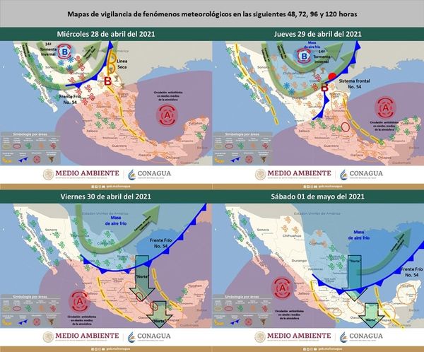El Pronóstico del Tiempo para Hoy miércoles 28 de abril proporcionado por el Servicio Meteorológico Nacional es el siguiente: