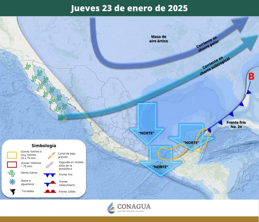 Comentó que este frente ya está dejando sentir sus efectos más duros en el norte de la Península de Yucatán, sobre todo en el estado de Campeche.