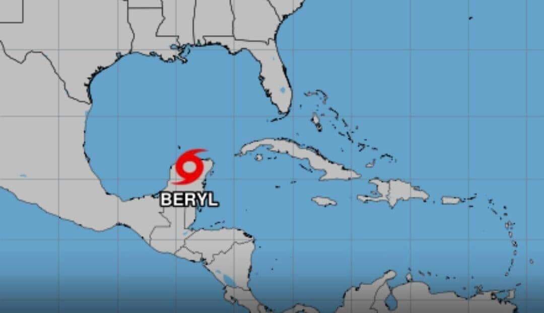 CANCÚN.- “Beryl” se degradó la tarde de este viernes a tormenta tropical a su paso sobre la Península de Yucatán, de acuerdo con información proporcionada por el Centro Nacional de Huracanes de Estados Unidos.