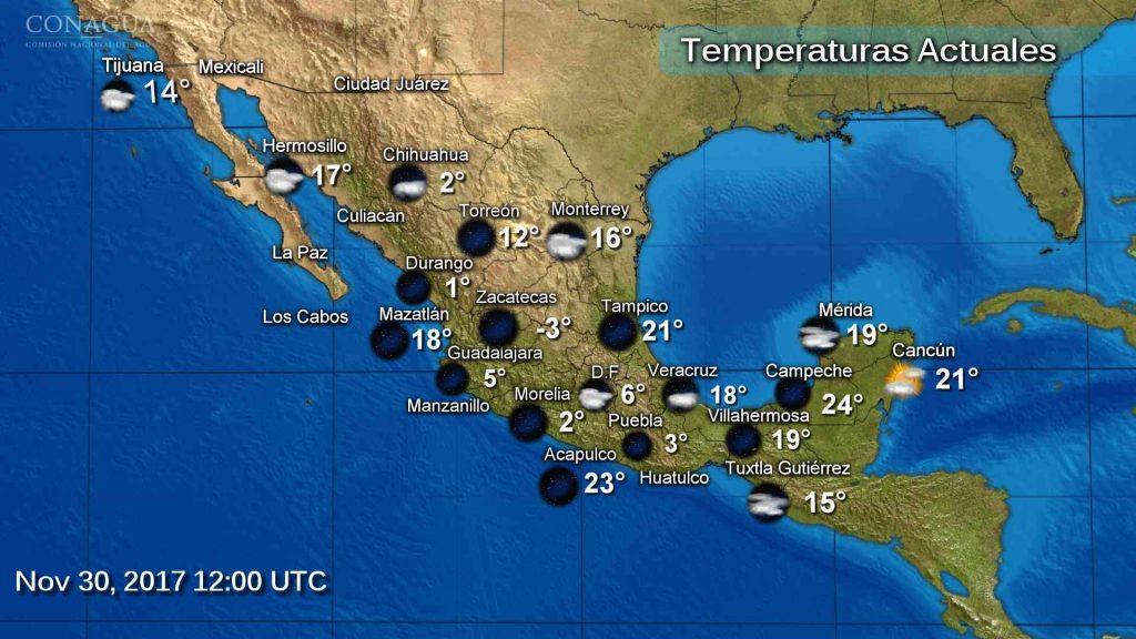 1.-BENITO JUÁREZ.- Medio Nublado a Nublado, lluvias dispersas con chubascos ocasionales, caluroso, Viento del este y noreste y de 15 a 25 kph., con rachas ocasionales más fuertes.