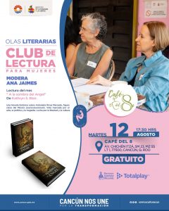 Cancún,-El próximo martes 11 de agosto, el Café del 8 será sede de una nueva sesión de Olas Literarias: Club de Lectura para Mujeres, encuentro que este mes tiene como protagonista la novela histórica A la sombra del Ángel, de Kathryn S. Blair.