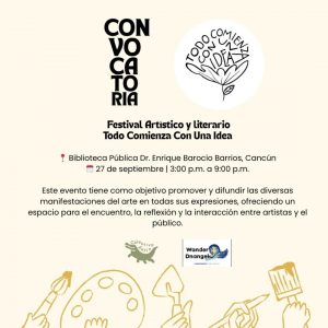 Cultura.- El talento local tendrá un nuevo escaparate para brillar en Cancún con la realización del Festival Artístico y Literario “Todo comienza con una idea…”, cuya convocatoria ya está abierta para todos los creadores interesados en formar parte de esta celebración cultural.