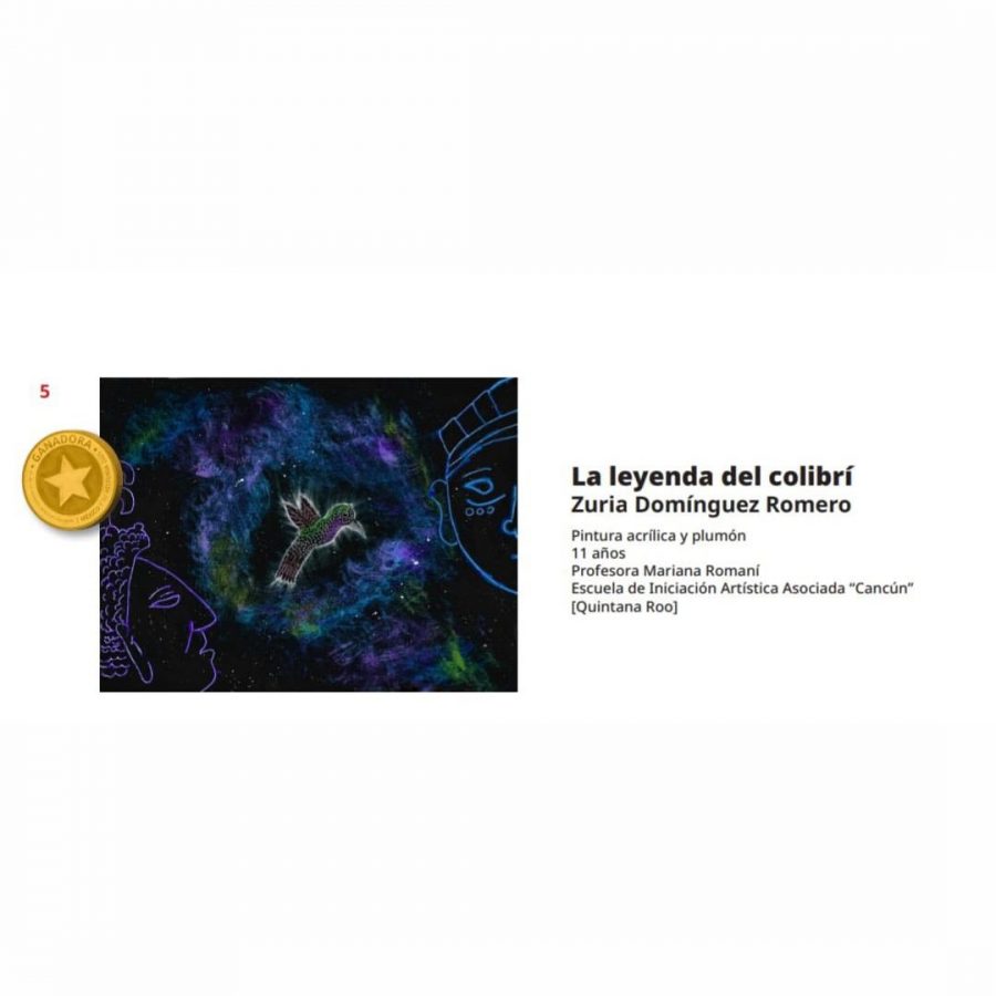 Con gran emoción, se dio a conocer que la joven artista Zuria Domínguez Romero fue una de las ganadoras del certamen con una obra inspirada en las leyendas mexicanas, obteniendo el primer lugar nacional. Junto a ella, también fueron seleccionadas para formar parte del catálogo y exposición nacional Dafne Giovanna Morelli Sánchez y Regina Valeria Alemán González, quienes compartieron esta experiencia creativa y formativa como parte del taller de artes visuales de su escuela.