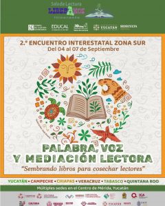 Cancún,-Del 4 al 7 de septiembre se celebrará en Mérida, Yucatán, el 2.º Encuentro Interestatal Zona Sur: Palabra, Voz y Mediación Lectora, bajo el lema “Sembrando libros para cosechar lectores”.