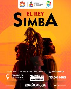 Cancún.- La sabana africana renacerá en el Teatro de la Ciudad de Cancún con la presentación de El Rey Simba, una adaptación libre que invita a niñas, niños y familias a redescubrir una historia donde la valentía, el legado y el autodescubrimiento trazan el camino hacia nuestro verdadero lugar en el mundo.