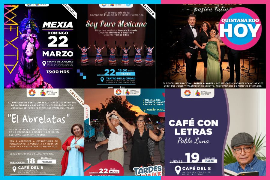 Cancún.- La ciudad de Cancún ofrece una variada agenda cultural durante la semana del 18 al 22 de marzo, con actividades para todos los gustos y edades.
