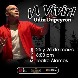 Finalmente, los días 25 y 26 de marzo a las 8:00 p.m., llegará ¡A Vivir! con Odín Dupeyrón, una puesta en escena que se ha convertido en referente del teatro contemporáneo en México.