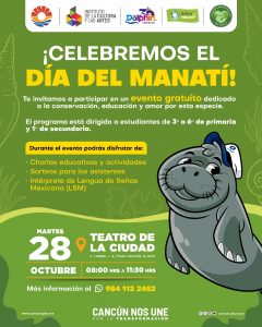 El cariño por la naturaleza y el compromiso con su preservación se unen este martes 28 de octubre en el Teatro de la Ciudad, donde se celebrará una jornada especial dedicada al Día del Manatí, símbolo de ternura, equilibrio y vida en los ecosistemas acuáticos.