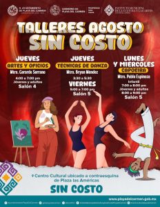 Quintana Roo,-El arte y la creatividad siguen abriendo puertas en Playa del Carmen con la invitación a participar en las clases gratuitas que el Centro Cultural ofrece durante todo agosto.
