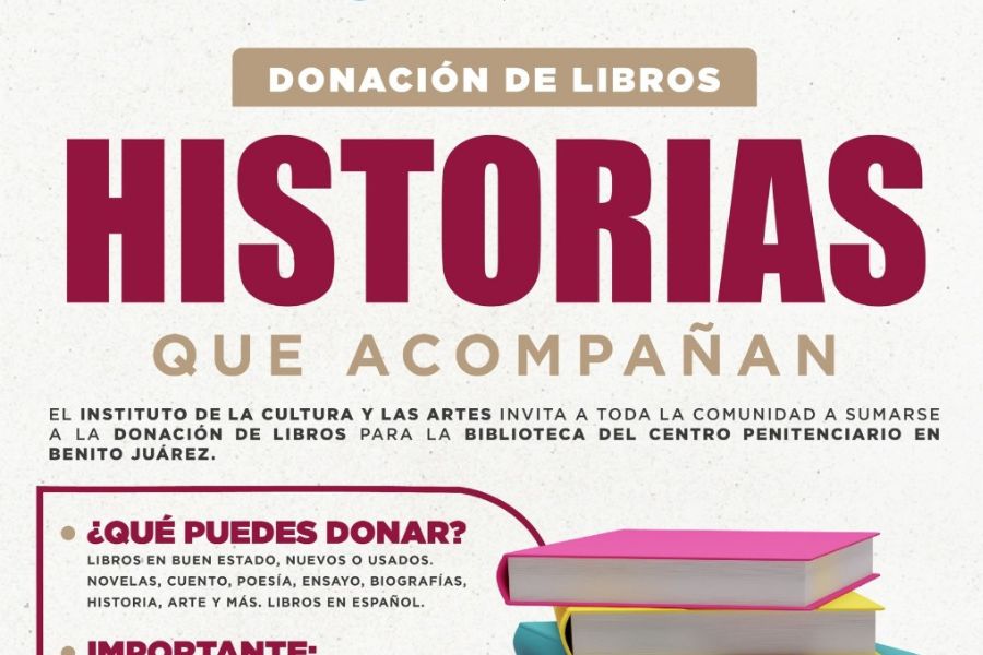 Cancún.- Las palabras también pueden ser libertad y bajo esta premisa, el Instituto de la Cultura y las Artes de Cancún lanza la convocatoria “Historias que acompañan”, una noble iniciativa que invita a la comunidad a donar libros para crear y enriquecer la Biblioteca del Centro de Reinserción Social de Benito Juárez.